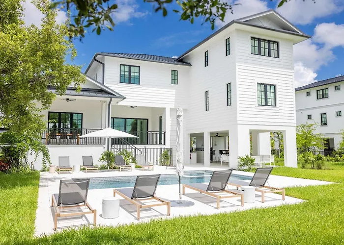 A Brand New Build Larkshine House - Pool Vila Key West está localizada a cerca de 5 km da Praia Smathers e dispõe de piscina privada, garantindo uma estadia relaxante.